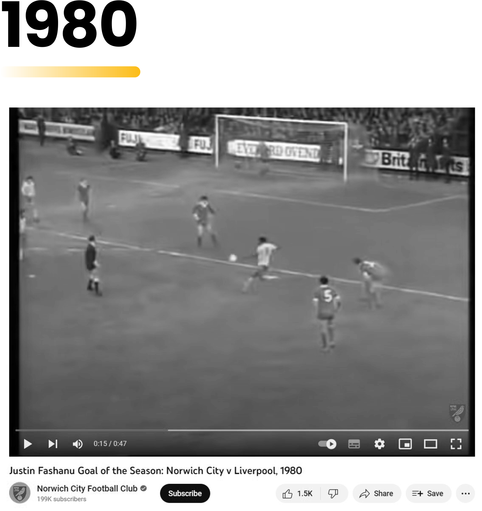 Remember that Goal!  1980 Goal of the season Justin Fashanu of Norwich City versus Liverpool was scored with a Stuart Surridge UFO Ball.