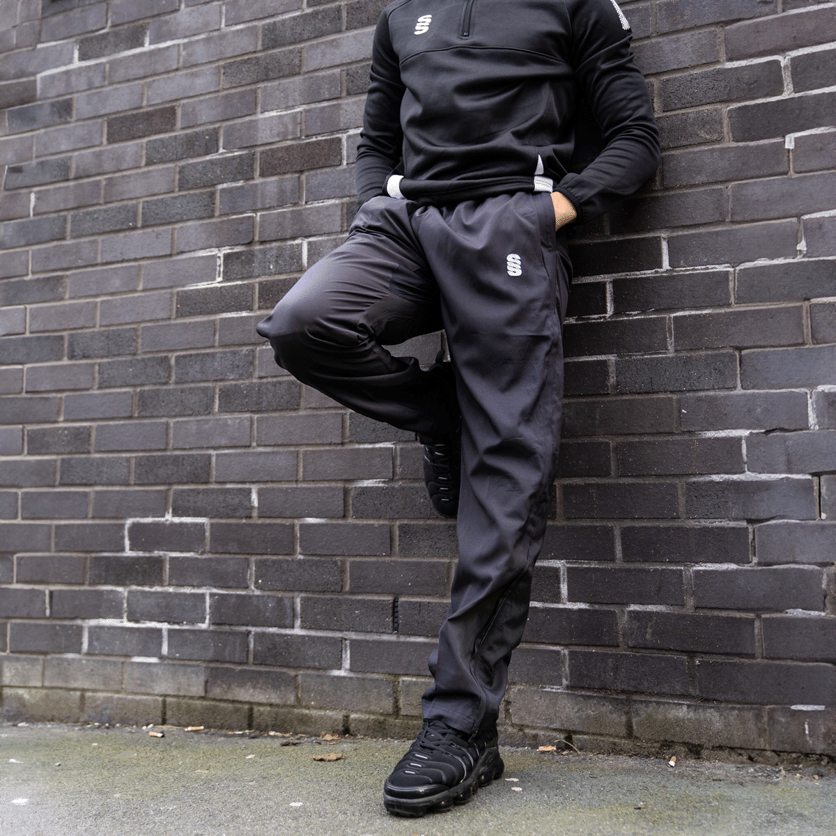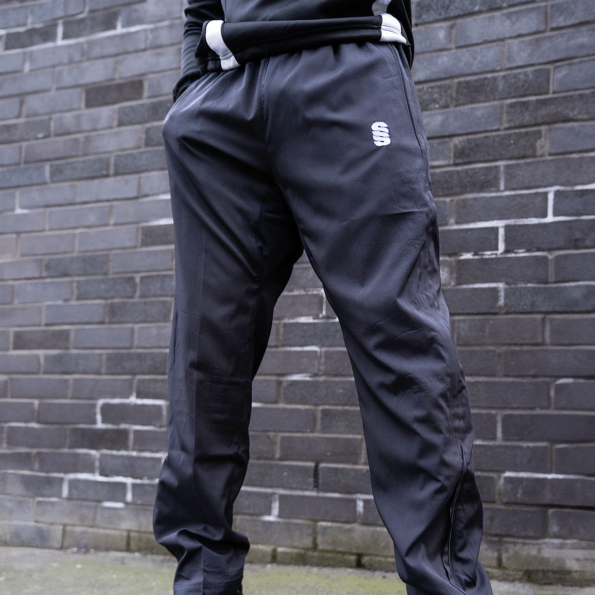 Straight leg trousers with 3/4 length side zip. 2 zipepd pockets and cotton feel lining.